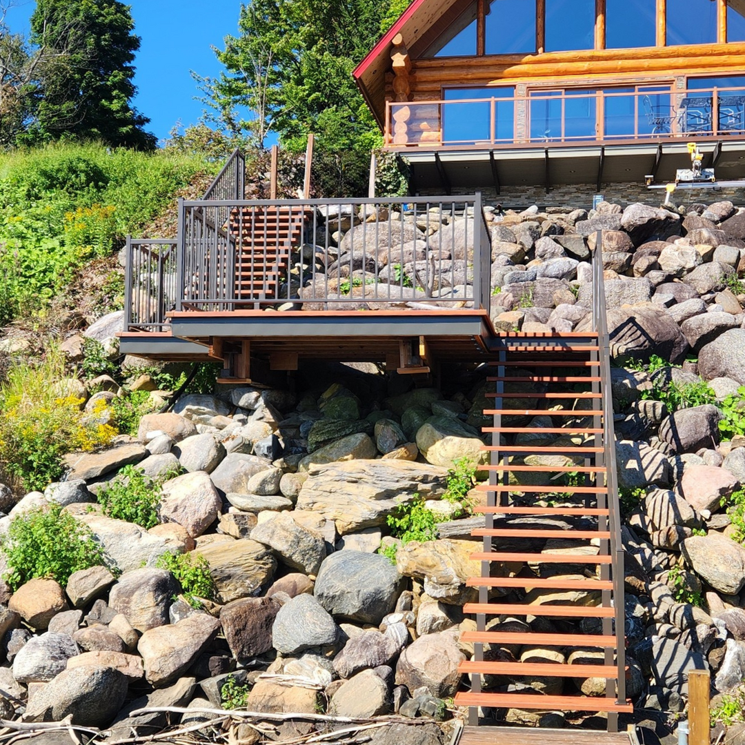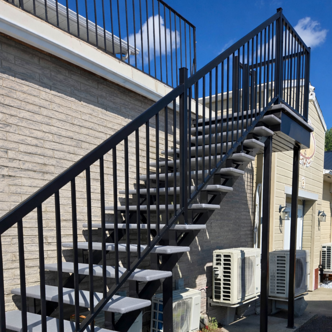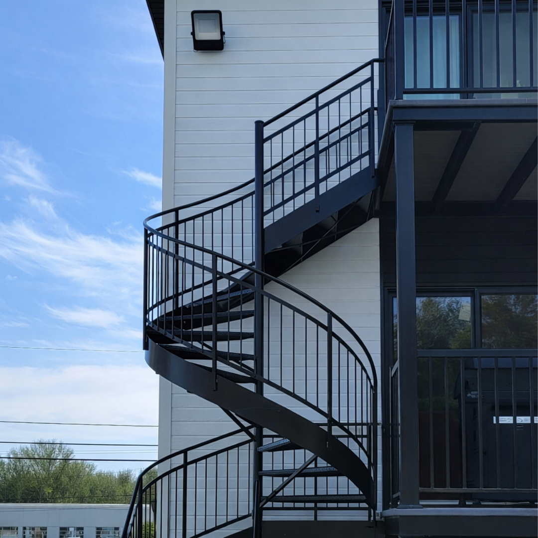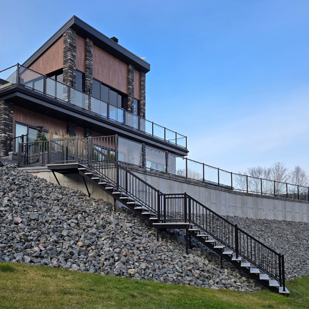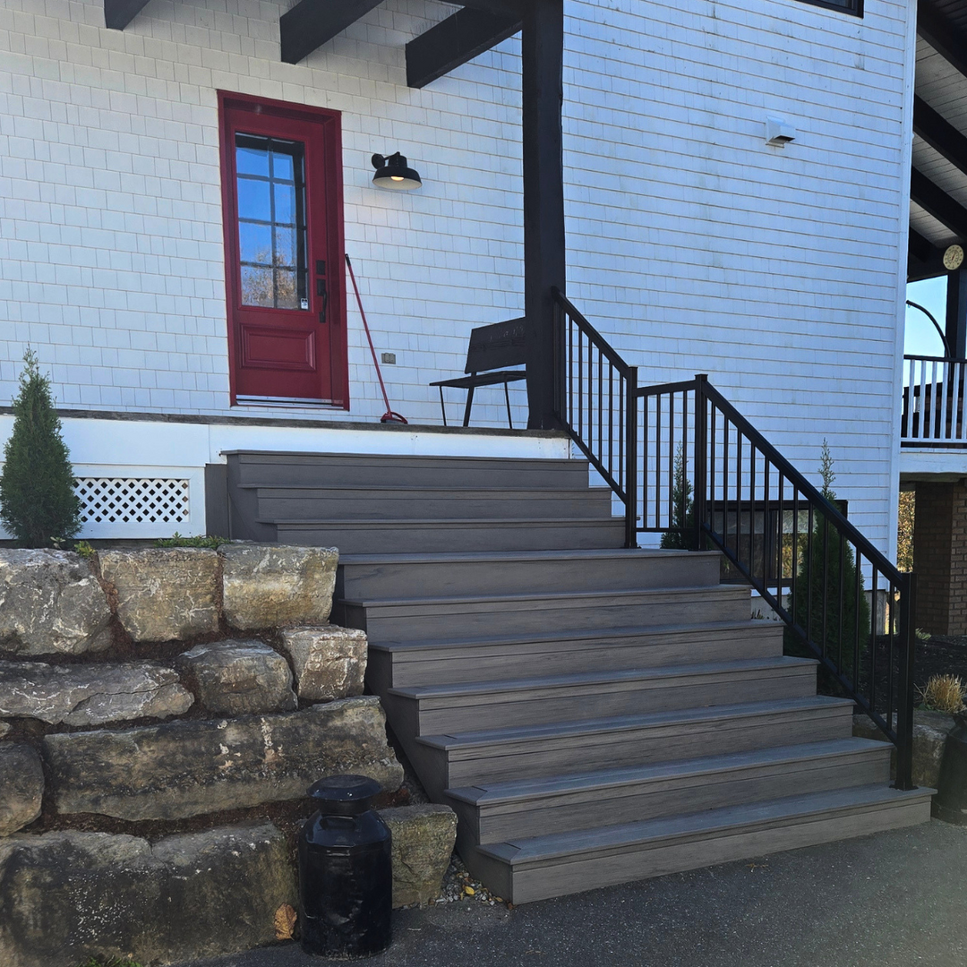 Personnalisez votre escalier selon votre projet : choisissez la couleur des marches parmi les options disponibles et optez pour des limons sur mesure pouvant s’harmoniser parfaitement avec vos planchers extérieurs et vos rampes.