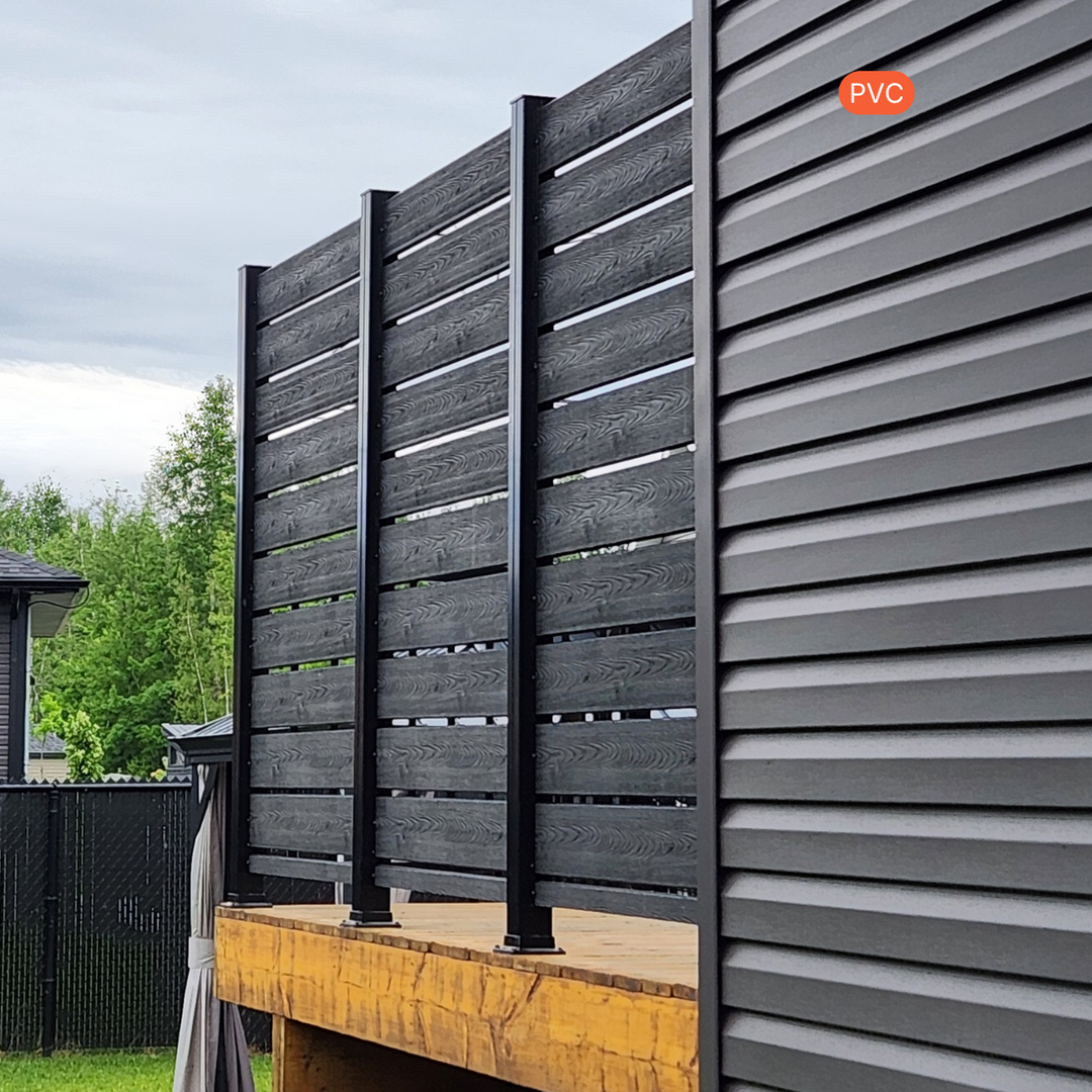 Un grand choix de modèles, couleurs et finis est disponible, particulièrement pour les panneaux en PVC, afin de s’harmoniser parfaitement avec votre terrasse, vos rampes ou votre aménagement extérieur.