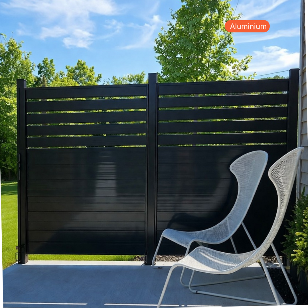 Murs d’intimité en aluminium ou en PVC conçus pour préserver la tranquillité de votre espace extérieur. Idéals pour votre cour, autour de la piscine ou pour créer une séparation élégante entre différents aménagements.
